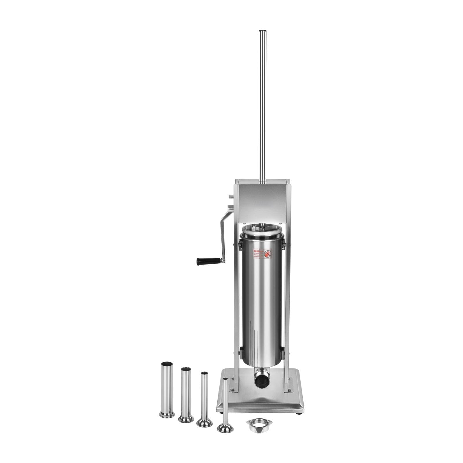 Nadziewarka posiada 2 biegi, aby łatwiej i szybciej można było podnieść tłok do góry oraz 4 lejki w zestawie, dzięki którym mamy możliwość nadziewania cienkich kiełbas jak i grubszych wyrobów.